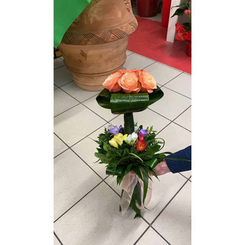 Buoquet Rose con fiori campo