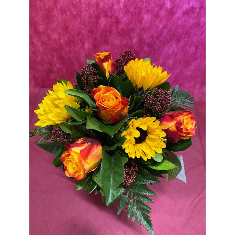 Bouquet di Girasole e Rose schimmia e vedi vari