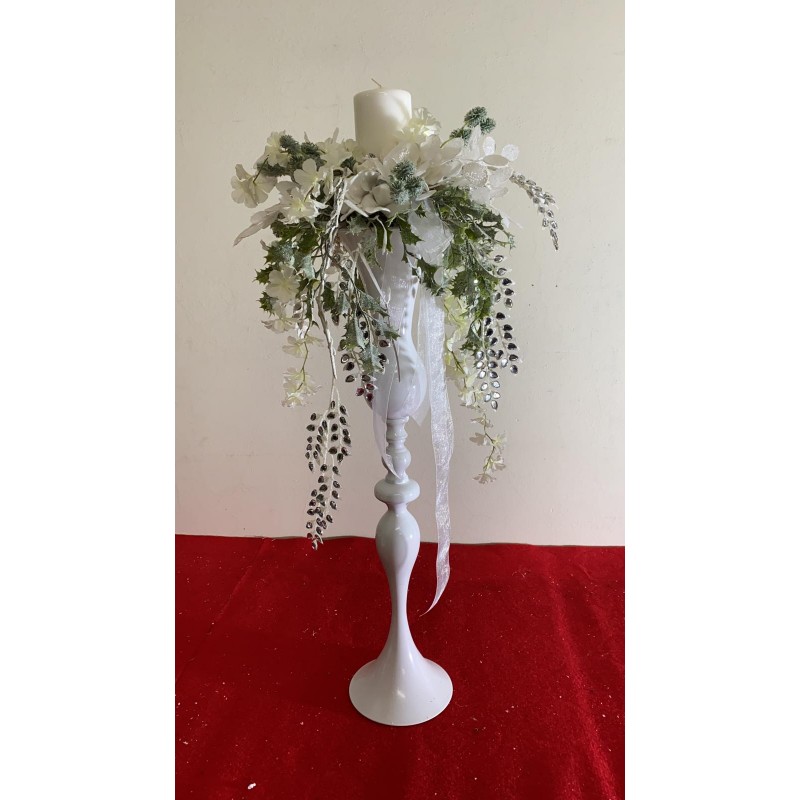 Struttura di metallo laccato bianco, Alt. cm 94 con addobbo natalizio