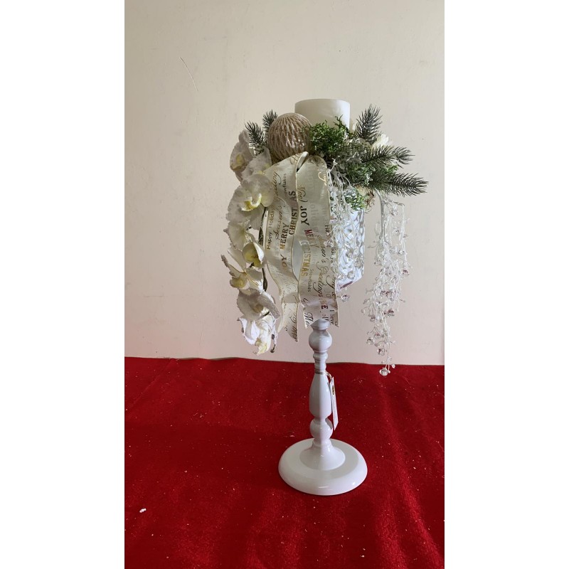 Struttura di metallo laccato bianco, Alt. cm 80 con addobbo natalizio