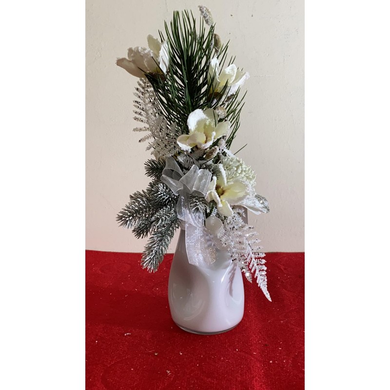 Struttura in vetro bianco, Alt. cm 60 con addobbo natalizio