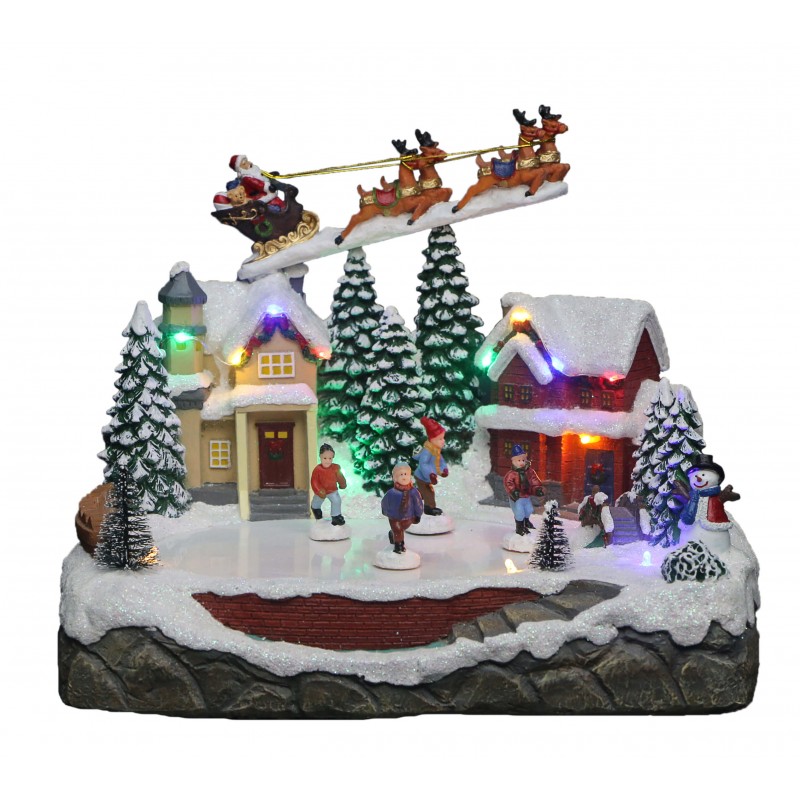 Villaggio in Resina con Renne e Luce Led e funzione pattinatori in movimento.