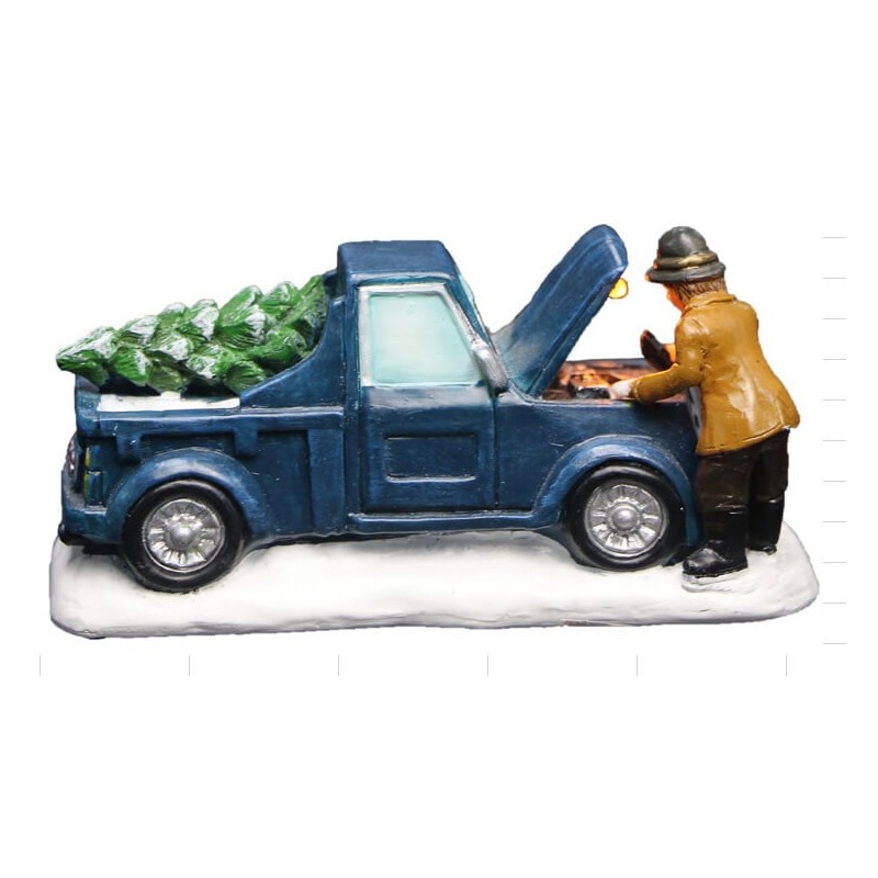 Furgone con cofano aperto con albero di Natale con luce a LED.