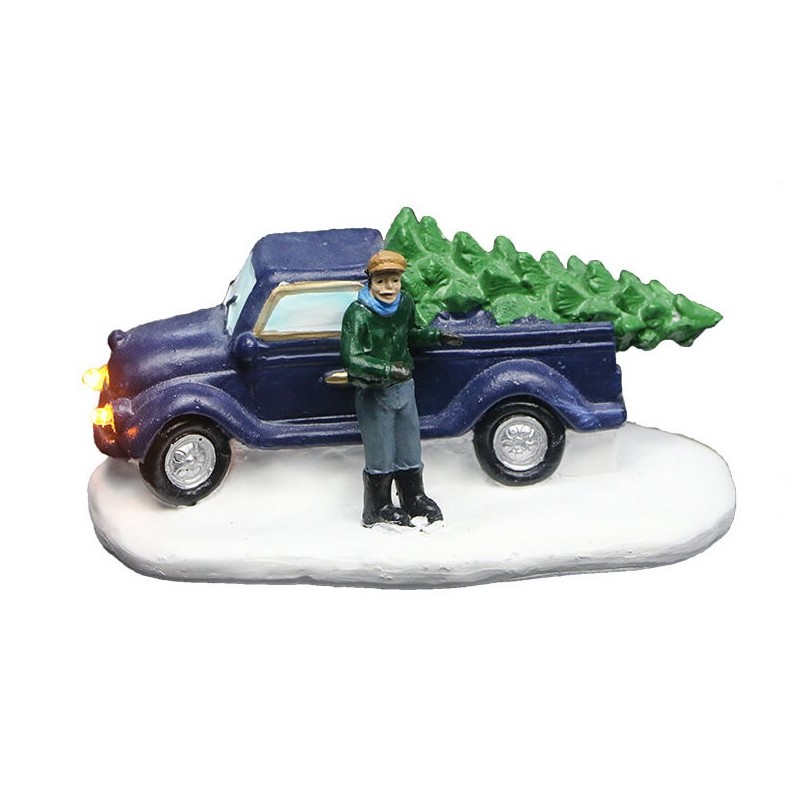 Furgone Blu con albero di Natale con luce a LED.