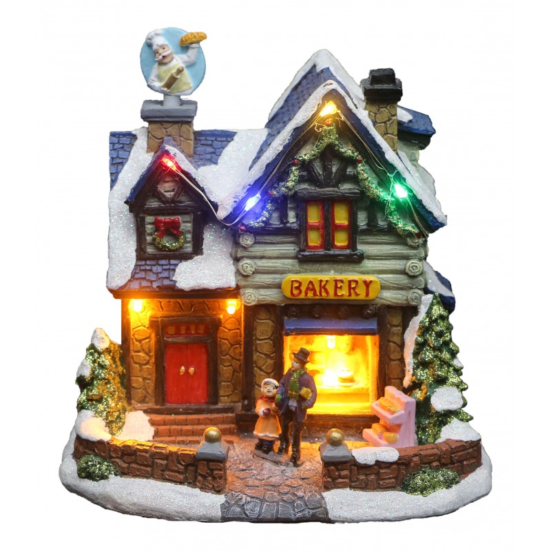 Panetteria natalizia con luce Led e movimento di pubblicità in alto.