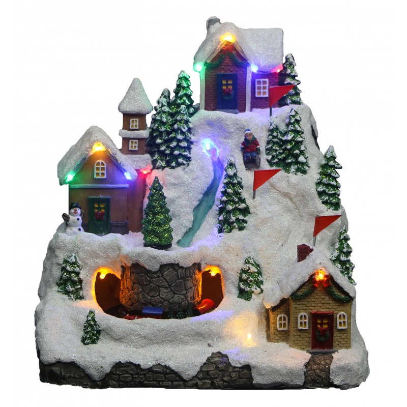 Villaggio di Natale con luci a Led, treno ed albero di Natale con movimento.